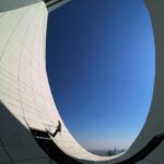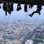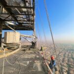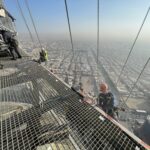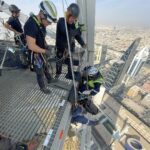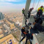 Na Kingdom Tower jsme se pohybovali v otevřeném výřezu, který se nachází blízko vrcholu věže. Zde jsme čelili nejen výšce, ale i silnému proudění vzduchu – práce zde vyžadovala pokročilé lanové techniky a perfektní plánování každého kroku.